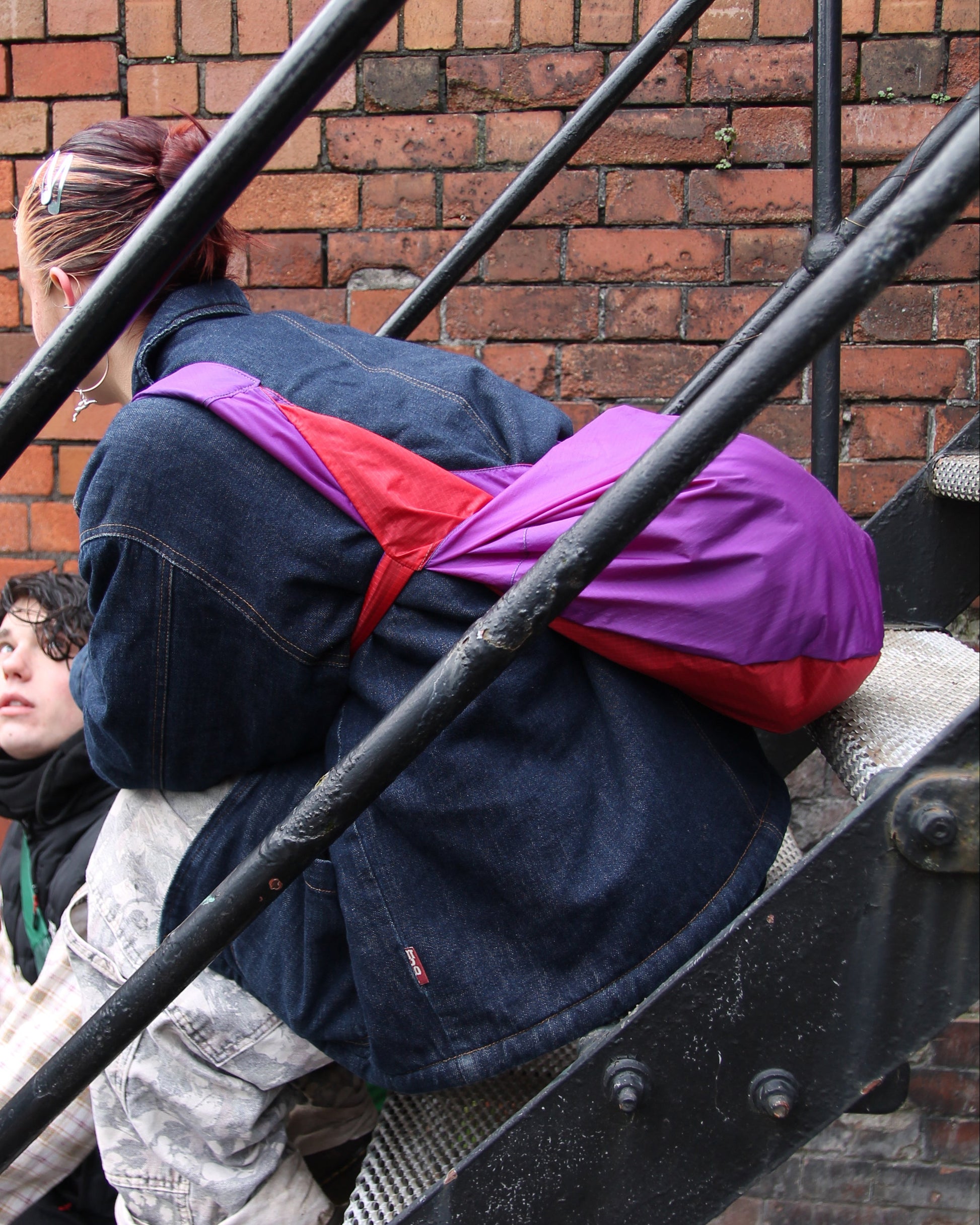 simple effective strap system : integrated packing pocket : durable upcycled fabric selection